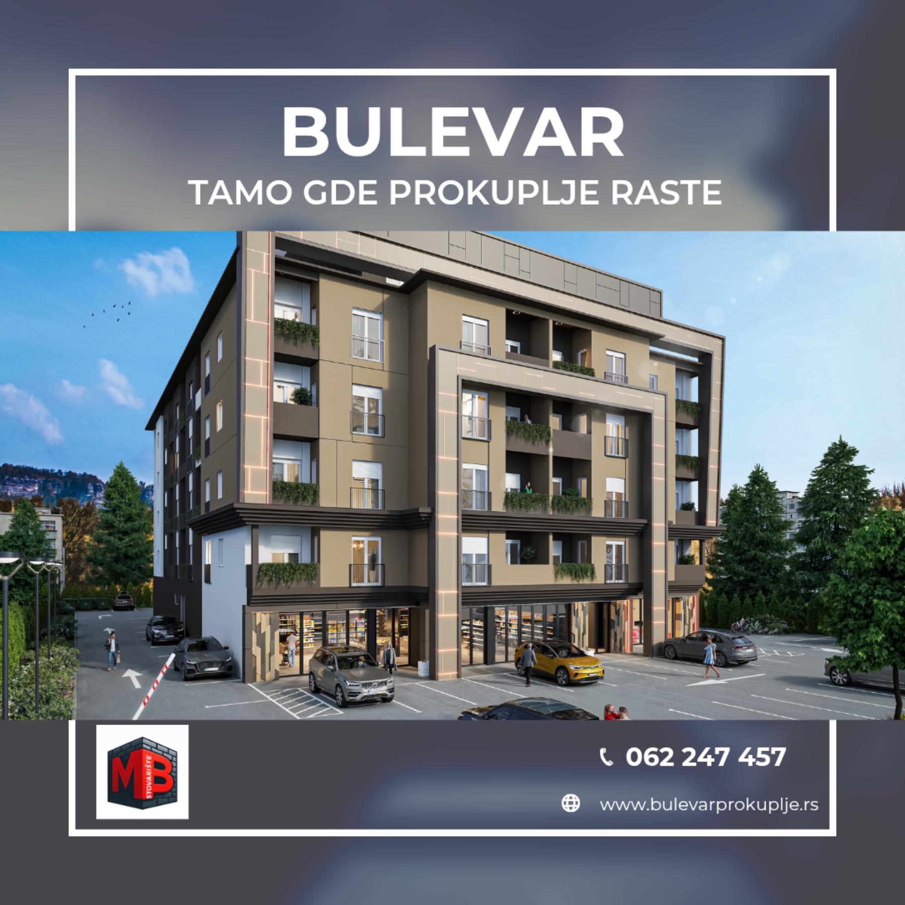 Nova zgrada BULEVAR nalazi se u ul. Vuka Stefanovića Karadžića, pored OŠ “9.oktobar” u blizini svih objekata koji će vam olakšati svakodnevnicu: šoping centar Penta Park, vrtić, osnovna i srednja škola, pijaca i klinički centar.Veliki investicioni projekti u poslednjih par godina doveli su do ubrzanog razvoja ovog dela grada koji slobodno možemo nazvati novim centrom Prokuplja.Kao sinonim za kvalitet, bezbednost i udobnost, BULEVAR nudi komforne stanove različitih struktura koje odlikuje funkcionalnost i obilje svetlosti kao i savremeni poslovni prostor u prizemlju zgrade. Dobro organizovana struktura objekta, lokacija i pažljiv odabir najsavremenijih materijala za gradnju čine ovu zgradu jedinstvenom u gradu.